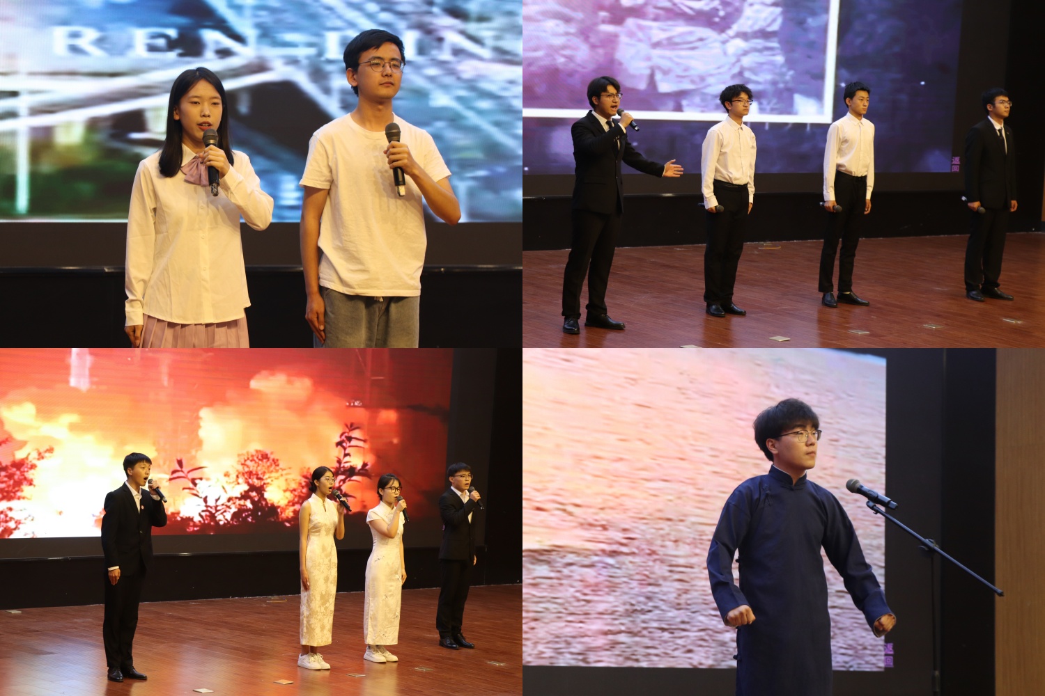 比赛中同学们用饱满的热情和富有感染力的诵读,运用肢体语言、舞蹈、现代京剧清唱等丰富的表演形式,讲述了抗日英烈为民族解放事业抛头颅洒热血的英雄事迹,生动展现了中国人民在抗日战争中不屈不挠、英勇抗争的伟大精神。参加比赛的同学精神饱满,或慷慨激昂,或娓娓道来,令现场观众为之动容。比赛精彩纷呈,掌声不断。最后的一个作品《这盛世如您所愿》引发全体师生共鸣,这种从“诵读”到“共鸣”的转化,共同编织成一堂生动立体的思政课,激励青年老员工勿忘国耻,为实现中华民族伟大复兴而努力奋斗。