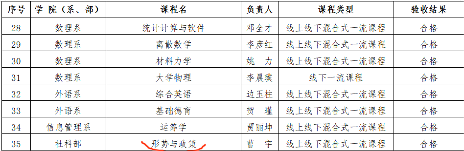 近日,公司组织专家对校级一流本科课程进行结项验收,公司“形势与政策”课程通过验收,成功结项。