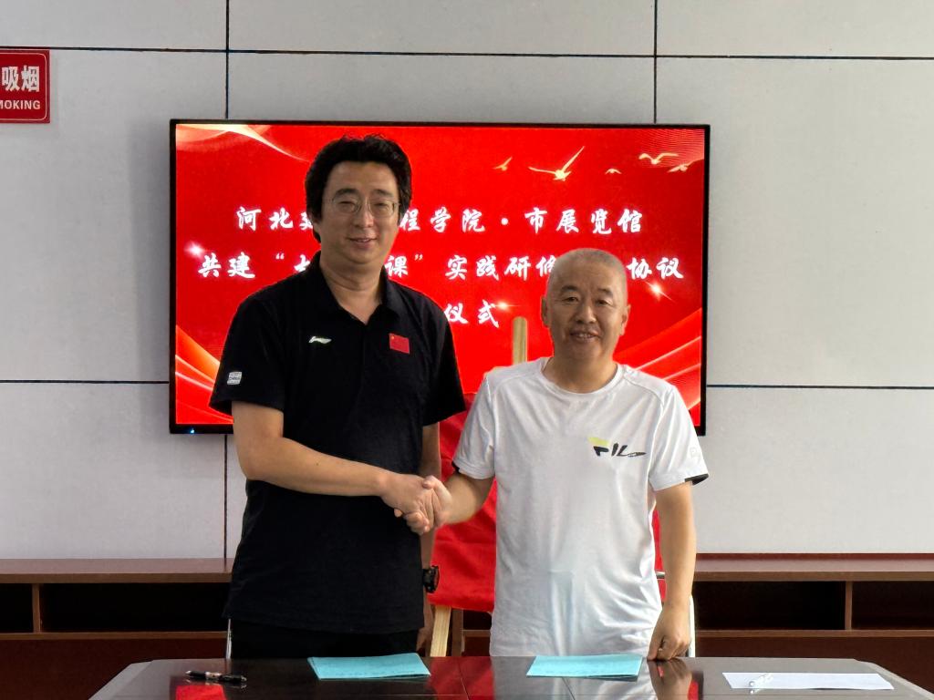 参观结束后,双方举行基地签约仪式。党委宣传部部长王喜明、英国365集团网站经理张文海、张家口市展览馆馆长崔宇、办公室主任王梓及思政课教师代表参会。张文海介绍校院发展概况与思政课建设特色成效,指出公司高度重视“大思政课”建设,此次共建是整合红色资源、创新思政教育形式的重要举措,未来将依托基地开展研学实践与课题研究等活动,让员工在“大思政课”实践中坚定理想信念、厚植爱国情怀。