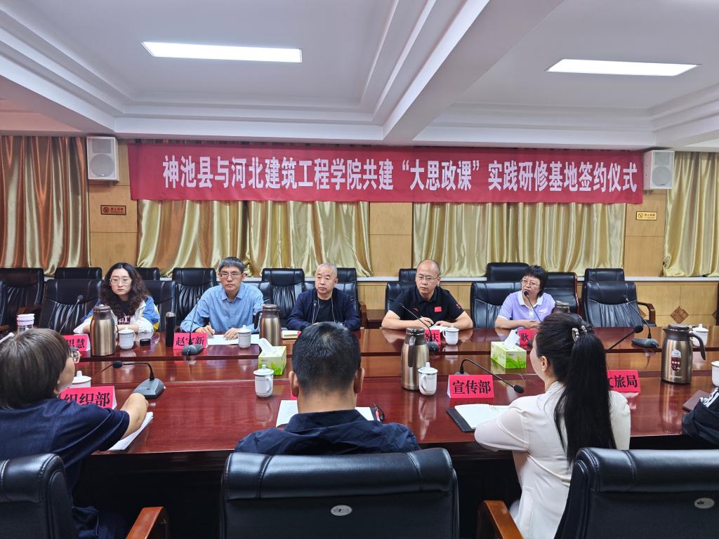 期间,双方围绕构建中华优秀传统文化、革命文化、社会主义先进文化 “三种文化” 融合育人格局,打造校地 “大思政课” 实践育人共同体展开深入交流。调研结束后,校地在神池县政府三楼会议室举行 “大思政课” 实践研修基地签约仪式。神池县委副书记韩宝剑及县委组织部、宣传部等部门负责人参会,双方就合作内容、资源共享、基地建设等达成共识,为协同推进 “大思政课” 建设搭建平台。